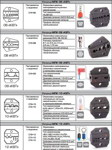 Пресс-клещи для опрессовки изолированных и неизолированных наконечников (КВТ)